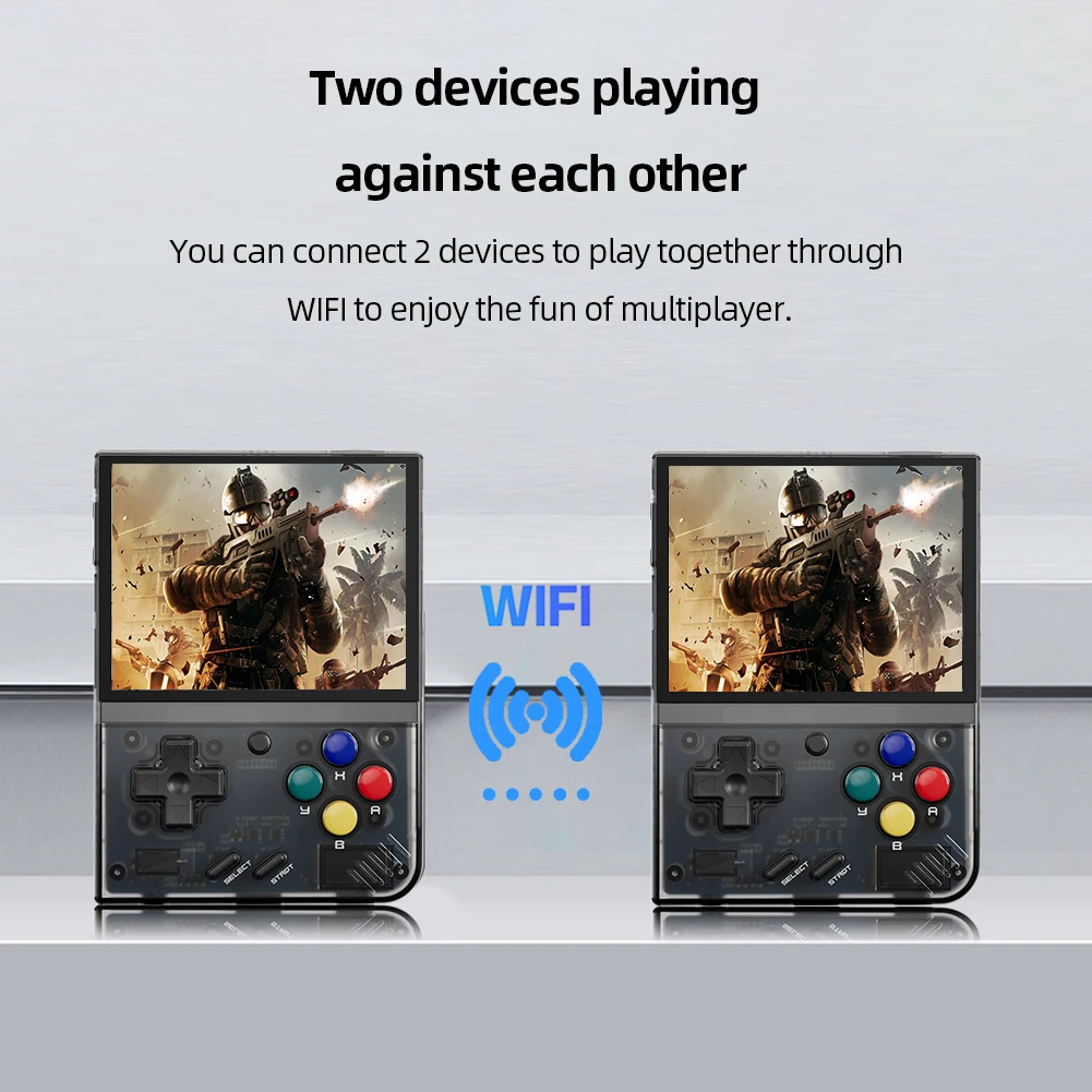 Mini Plus Portable Retro Handheld Game Console Linux System 3.5Inch IPS Screen Classic Video Game Console Rechargeable WiFi Support 3000mAh Gift for Kids and Adults Feature: 1. Versatile Gaming Experience: The portable retro handheld game console comes pre-loaded with support for multiple emulators including for DC, PS, CPS1, CPS2, CPS3, FBA, WSC, NEOGEO, GBA, GBC, MAME, allowing you to enjoy a vast library of classic video game console titles. Additionally, it supports downloading games in compatible formats for endless gaming fun. 2. High-Quality Display: With a 3.5-inch IPS screen boasting a resolution of 640*480, this video game console delivers crisp and vibrant visuals, enhancing your gaming experience and bringing your favorite classic games to life with stunning clarity. 3. Long-Lasting Battery Life: Equipped with a 3000mA polymer battery and supporting Type-C charging, this handheld game players device ensures you can enjoy extended gaming sessions without worrying about running out of power, making it perfect for gaming on the go. 4. Connectivity Options: Offering Wifi connectivity, this pocket game console allows for easy game downloads and updates, ensuring your game library is always fresh and up-to-date. This feature enhances the overall convenience and versatility of the video game machine. 5. For Linux Operating System: Powered for Linux operating system, this classic video game console boasts a stable and user-friendly interface, making it easy to navigate through games and settings. This ensures a smooth and enjoyable gaming experience for gamers of all ages. Specification: Note: